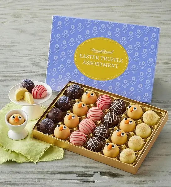 Sweeten up anyone’s Easter Sunday with a mouthwatering seasonal assortment of chocolate truffles. This collection includes four each of dark chocolate blueberry, dark chocolate raspberry, strawberry milkshake, and white chocolate crème brulée, and another eight of classic milk chocolate truffles decorated as chicks. It’s the perfect Easter gift idea for anyone who either loves eating a pound of chocolate or is trying to cut down from eating 2 pounds…