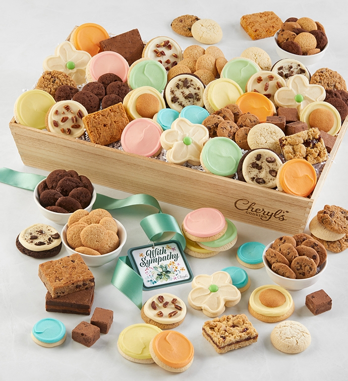 This cookie basket is filled with comforting creations to show you care. The selection includes everything from white chocolate raspberry cookies and blackberry galettes to Moose Munch® cookies and more. It all arrives in an elegant basket that includes a hangtag with a thoughtful sympathy message.